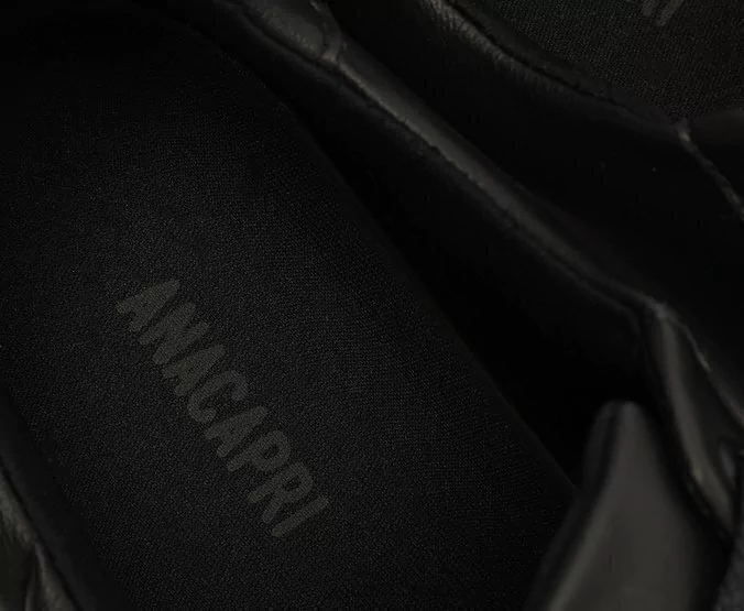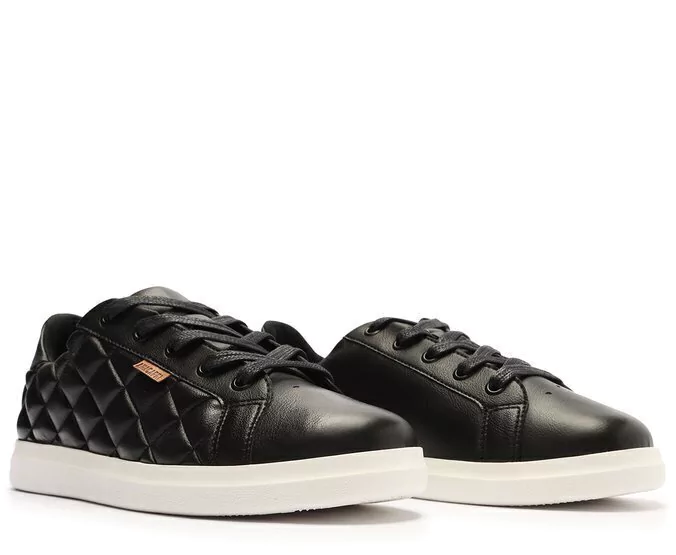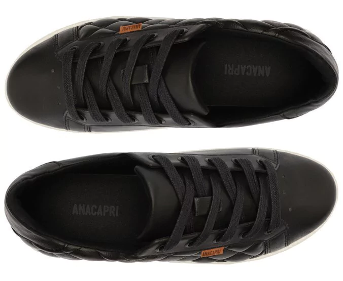 Tênis ANACAPRI na cor preta. Possui shape clássico, solado flat e atacadores na mesma cor. Leva costuras em matelassê em toda a sua lateral, além de detalhes em material sintético liso no cabedal e calcanhar. Contém tag lateral com o nome da marca.