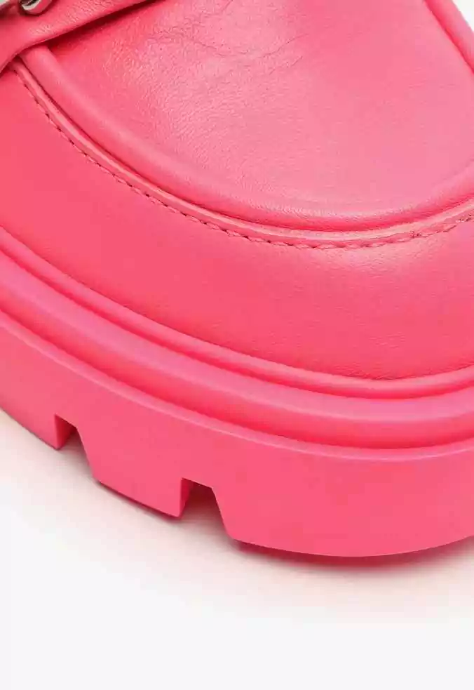 Impactante, esse mocassim de couro aparece em um rosa pink super trendy com efeito monocromático, ou seja, até o seu interior tem essa mesma tonalidade! O solado tratorado e a corrente sofisticada agregam valor para o design ousado, perfeito para looks fashionistas.